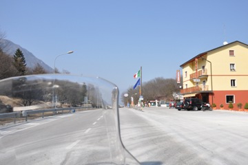 Poche centinaia di metri e mi trovo davanti la strada coperta di ghiaccio e dagli ultimi rimasugli di neve.