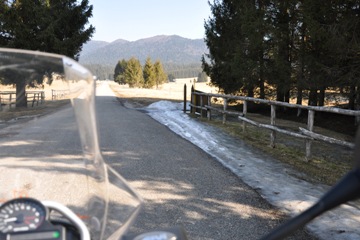 Passarlo vuol dire poter scivolare su ghiaccio, come potrei alzare la moto da solo? Cosa posso trovare più avanti? Perciò meglio rinunciare, fare qualche foto e ritornare sui miei passi.
